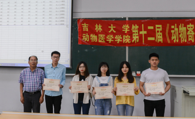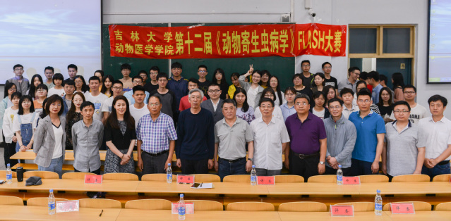 于2019年6月14日上午在科学讲堂100教室,成功举办了第十二届《动物寄生虫病学》FLASH大赛。应邀到场的评委嘉宾有学校教学督导组王哲教授、预防兽医系丁壮教授、兽医公共卫生系王新平教授、基础兽医系邱家章教授、临床兽医系付本懂教授,以及动物寄生虫病学科组的张西臣教授、李建华教授、尹继刚教授、宫鹏涛副教授和杨举老师。参赛人员为2015级动物医学专业全体学生,共计100余人。