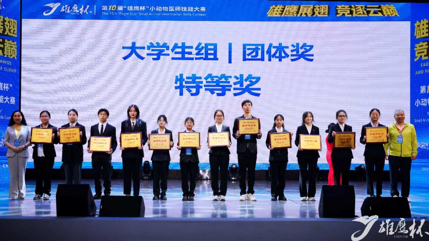 动物医学代表队在第十届“雄鹰杯”小动物医师技能大赛中荣获团体特等奖