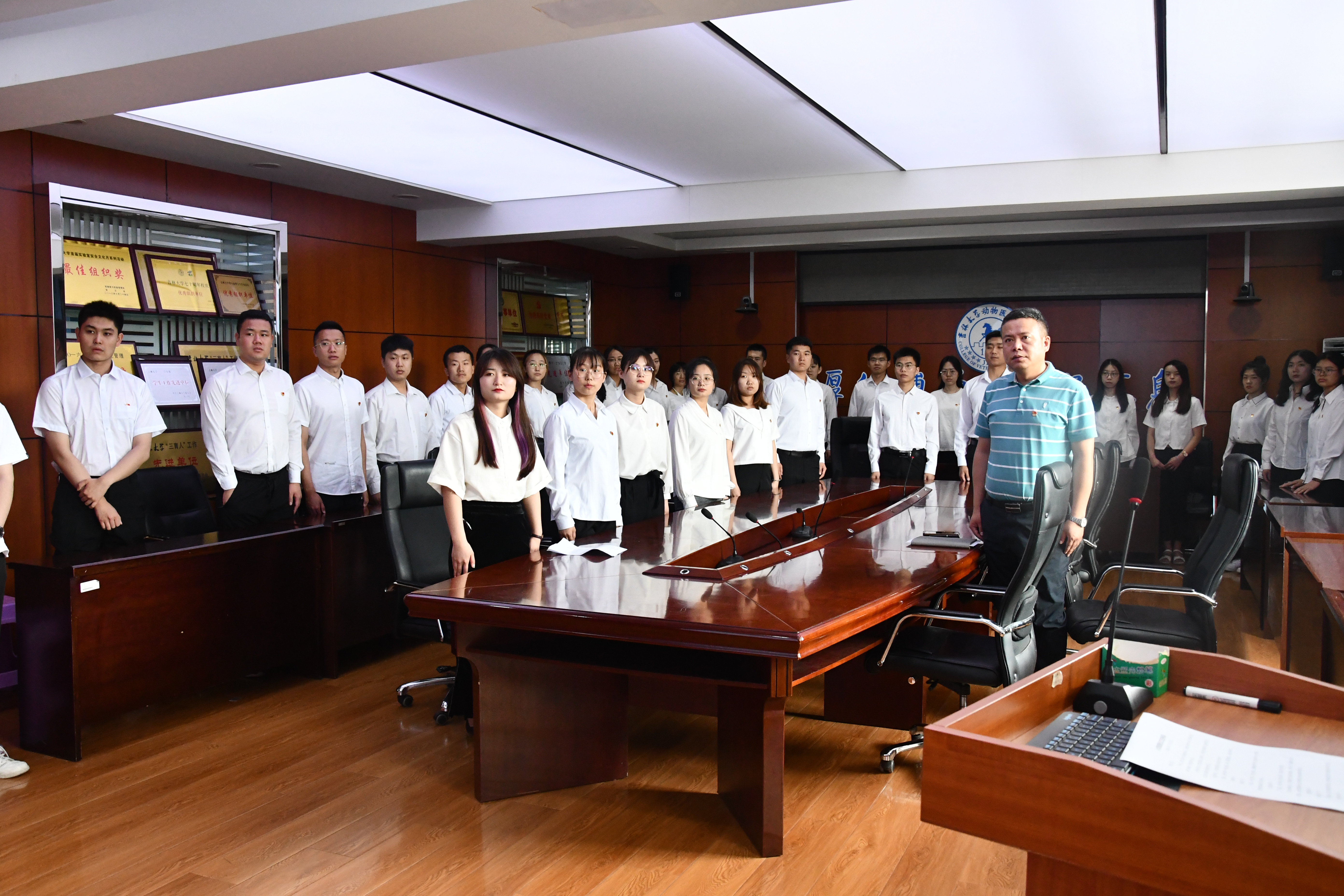 党委在兽医楼三楼会议室召开了庄严而隆重的新党员入党宣誓活动。学院党委副书记秦明、党委办公室负责人解胜男参加了此次活动。