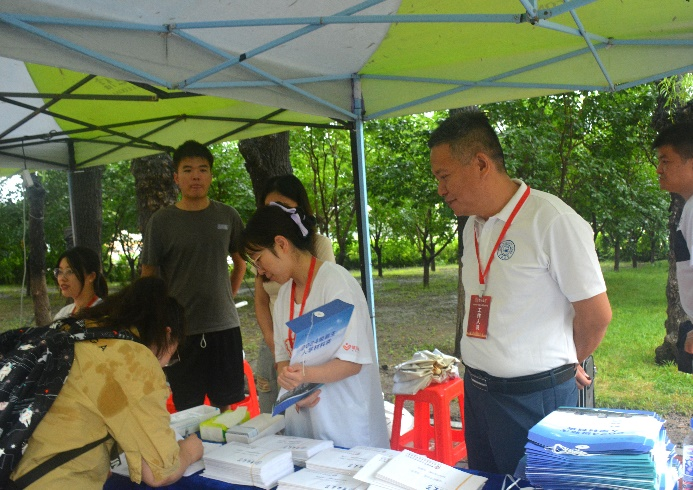 的全新旅程。学院党委副书记秦明、研究生辅导员王慧丽老师一大早就赶到迎新现场,全面安排各项工作,精心布置、以确保迎新活动顺利推进。研究生志愿者们细致耐心,认真负责,仔细核对新生信息,为新生办理登记注册,并热心的为同学们答疑解惑,他们忙碌穿梭的身影在校园内形成了一道道靓丽的风景线。