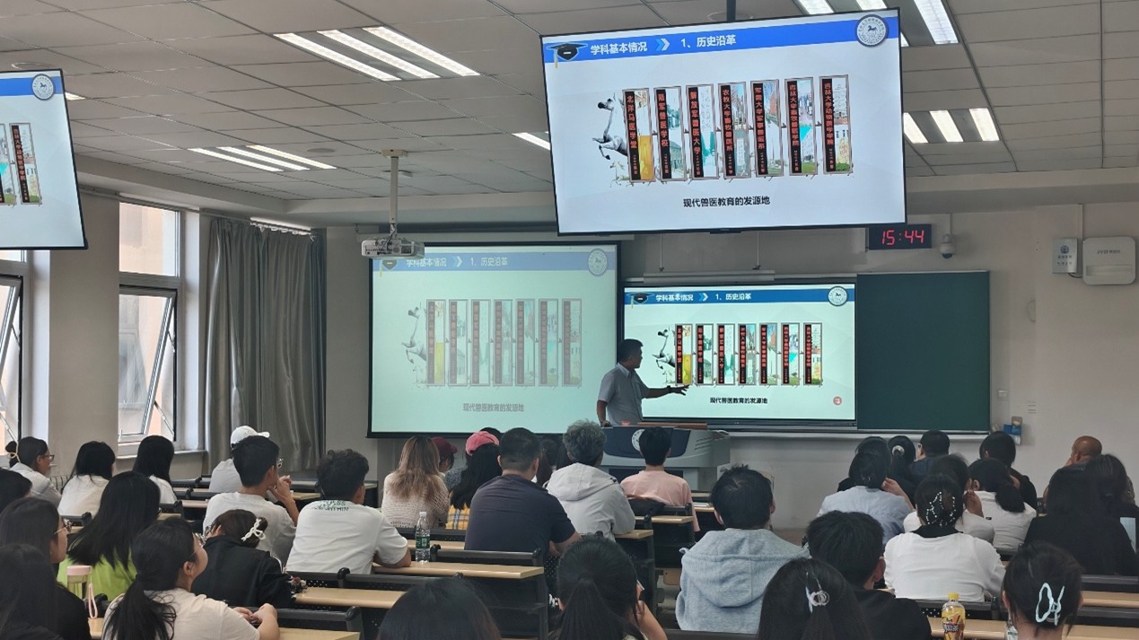 这片百年学术沃土的发展历程,强调学院始终秉承“求实创新、励志图强”的办学理念,已成为我国动物医学领域人才培养和科学研究的重要高地。作为国家“万人计划”科技创新领军人才,他如数家珍般展示了学院在服务国家重大战略需求方面的突出贡献。在介绍2026年研究生招生政策时,王化磊副院长着重阐释学院“厚基础、宽口径、重实践、求创新”的培养特色,以及“产学研用”深度融合的育人模式,这些都为学子们提供了与兽医前沿接轨的培养路径和全方位的成长保障。