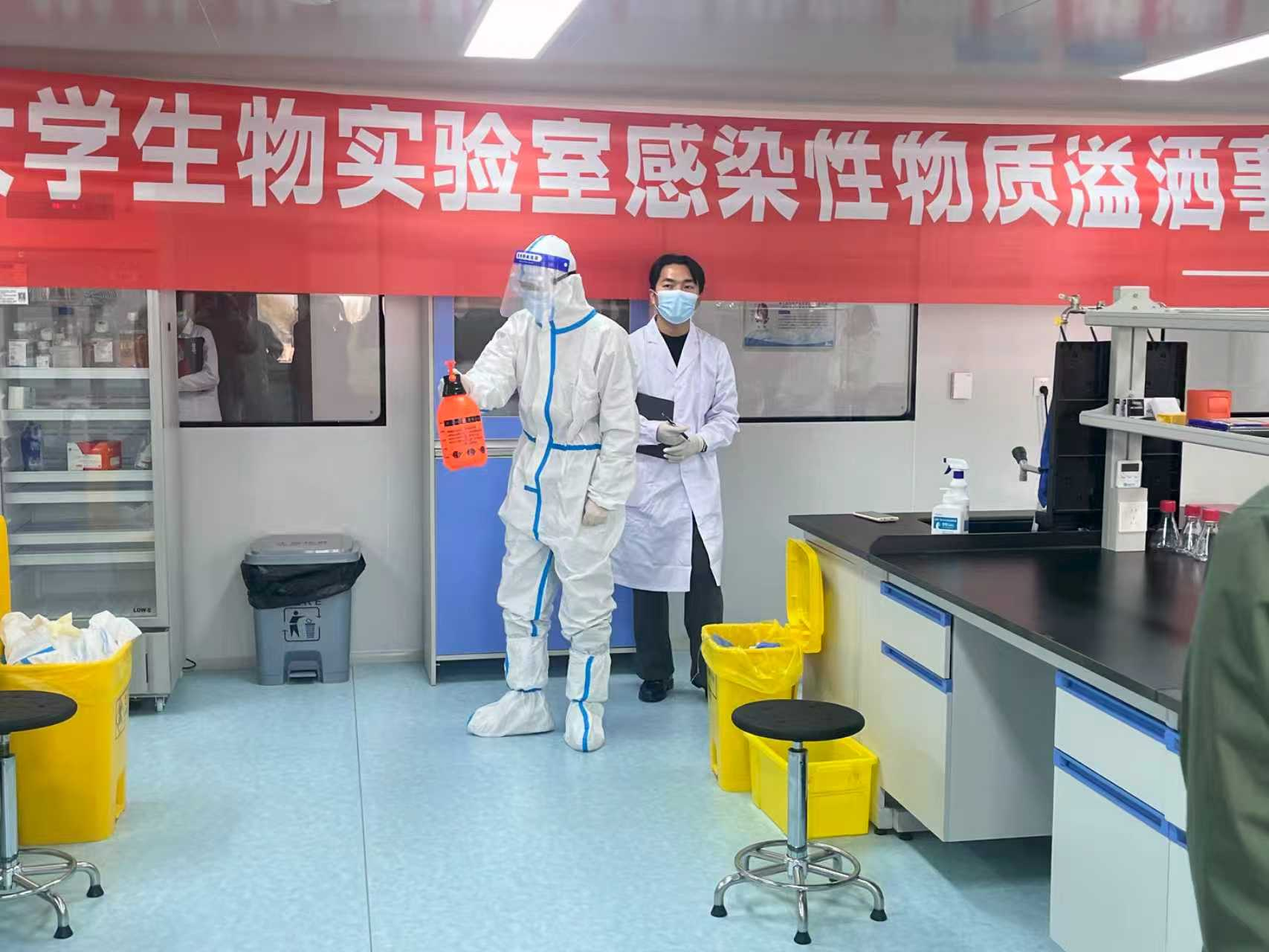 1028下午,根据学校第四届实验室安全文化月活动总体安排为提升实验室人员生物安全突发事件的应急处置能力,强化“预防为主、快速反应、规范处置”安全意识,实验室管理处组织相关企业人员来到人畜共患传染病重症诊治全国重点实验室,组织指导“感染性物质溢洒事故”专项应急演练
