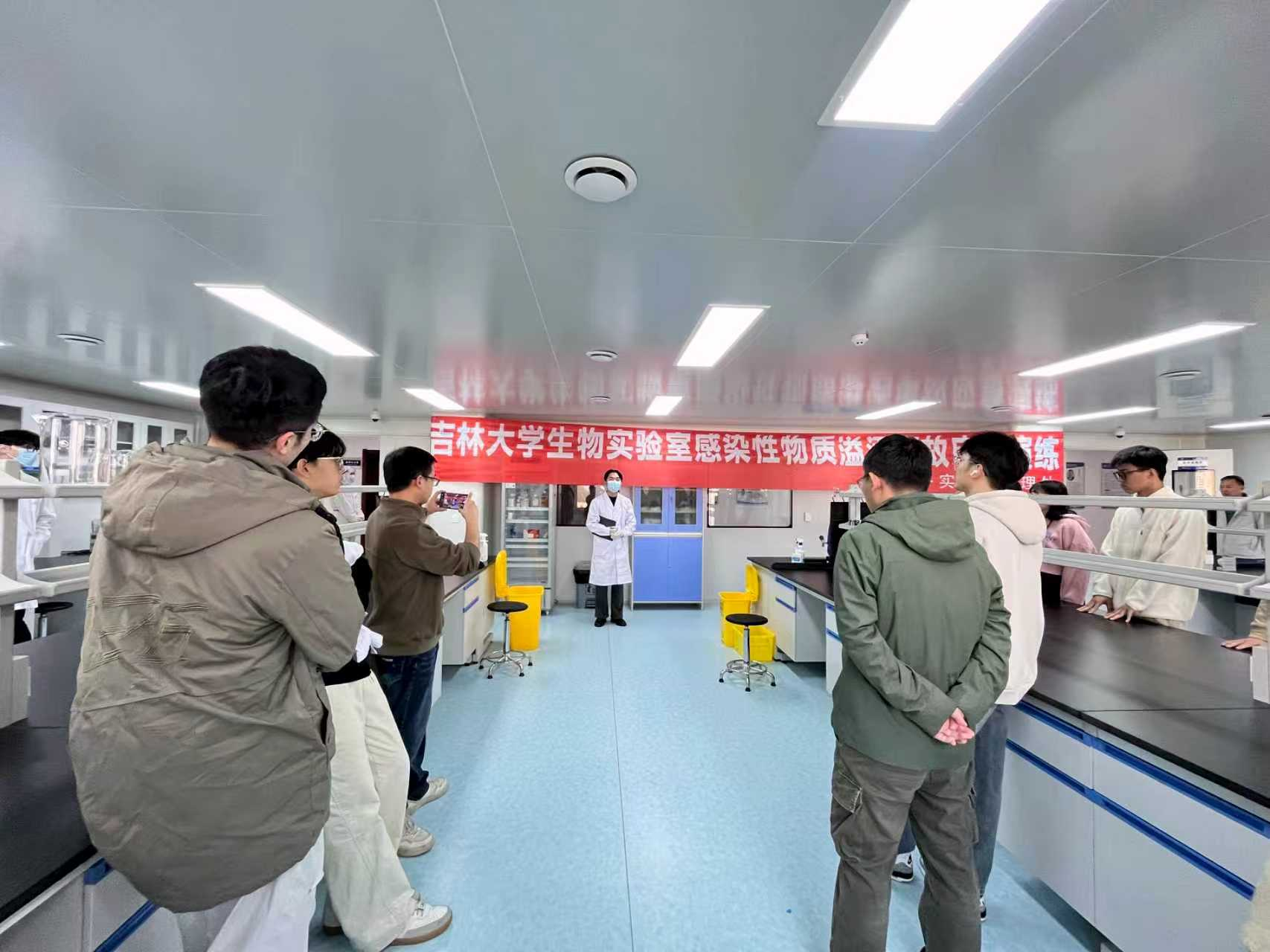 本次演练采用了“模拟情景+实操演练”的方式。企业人员与事先培训好的8名研究生,先后进行了致病性病原体意外泄漏场景模拟以及事故发生后的应急疏散、现场临时隔离、事故报告、应急处置、应急救助、现场恢复流程进行实操演练。整个应急处置流程响应快速,科学规范,参加演练的同学沉浸式体验了整个操作流程,旁观学习的同学通过认真观察,也详细了解和学习了整个操作流程。